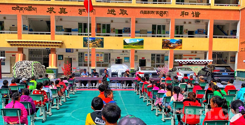 中國西藏網(wǎng)訊 暑期將至,為進一步增強少年兒童的法治意識,營造有利于少年兒童健康成長的和諧氛圍。7月5日、6日四川省甘孜藏族自治州新龍縣公安局沙堆派出所及其所屬的銀多卡點民警先后走進沙堆、銀多鄉(xiāng)小學(xué)校,開展“法治進校園,安全記心中”教育普法活動。