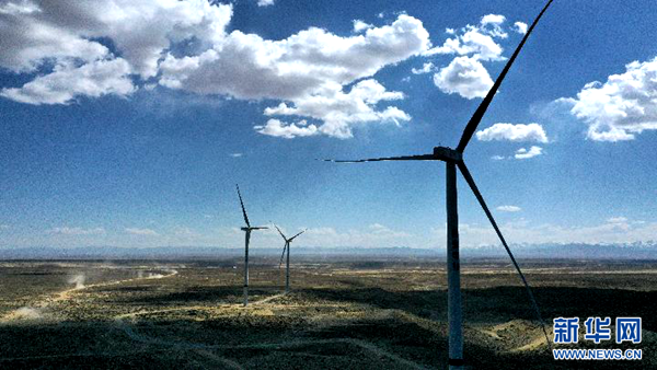青海省海南藏族自治州共和縣的一處風(fēng)力發(fā)電項(xiàng)目(5月1日攝,無人機(jī)照片)。新華社記者 張宏祥 攝