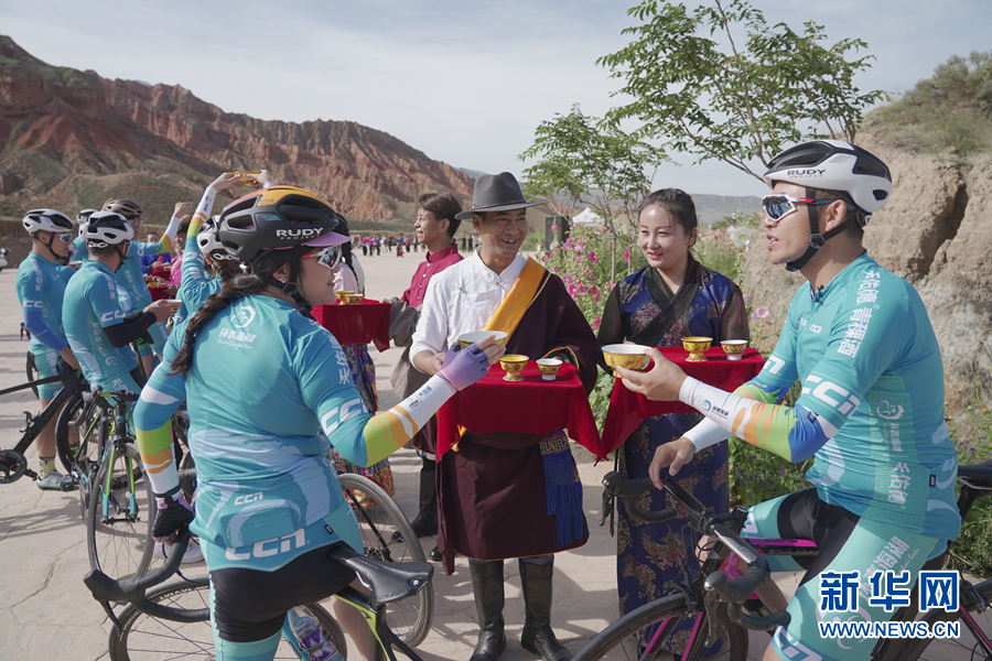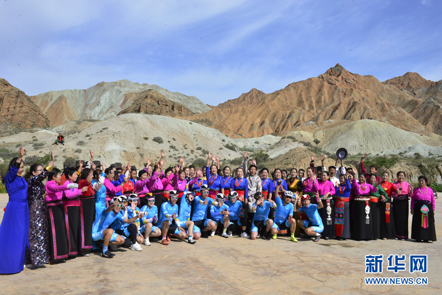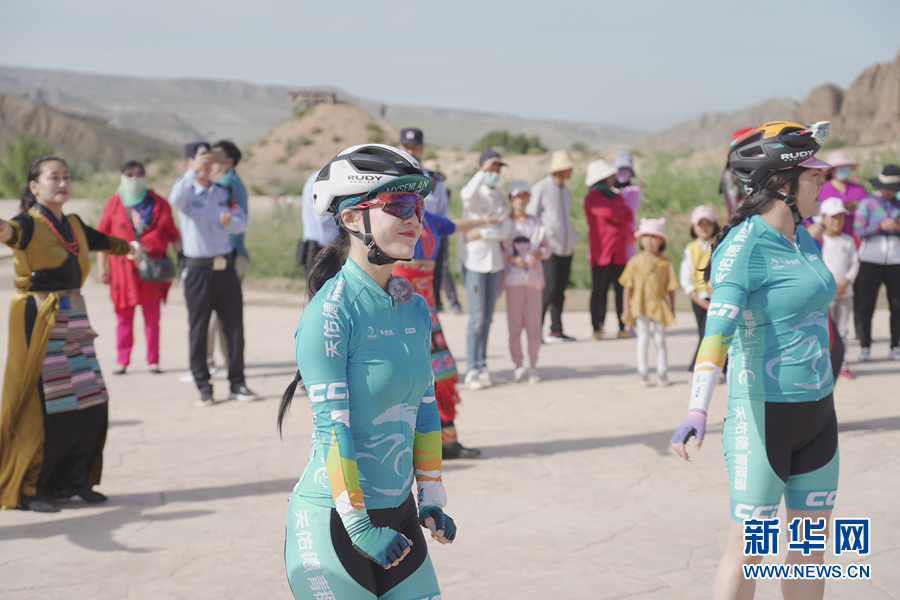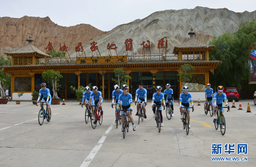 圖為“挑戰(zhàn)2020”環(huán)湖精英行“網(wǎng)紅”團隊在貴德國家地質(zhì)公園準(zhǔn)備騎行。新華網(wǎng) 魚昊 攝