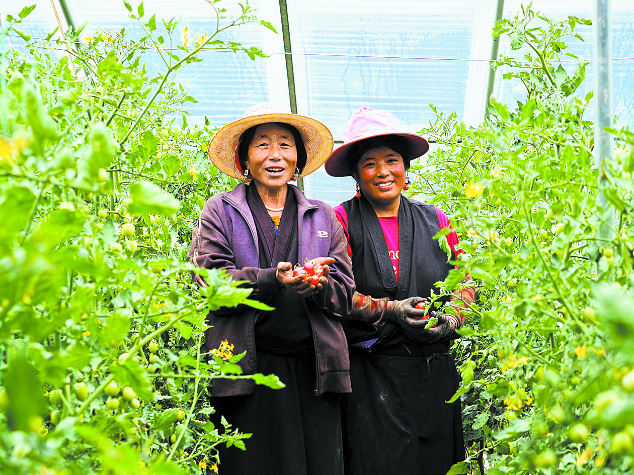 “嘗嘗這個小番茄,是不是很甜?”隨意摘下一個紅寶石般的小番茄,村民達娃卓瑪笑著遞給記者。