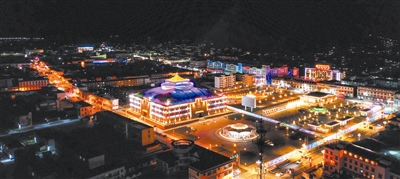 夜幕降臨,燈火輝煌的石渠鍋莊廣場。呂甲 攝