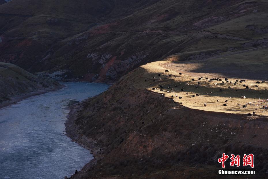 10月15日,位于青海省雜多縣扎青鄉(xiāng)的瀾滄江源頭如油畫(huà)般的風(fēng)景。圖為瀾滄江源頭的一個(gè)牧場(chǎng)。中新社記者 蘇丹 攝