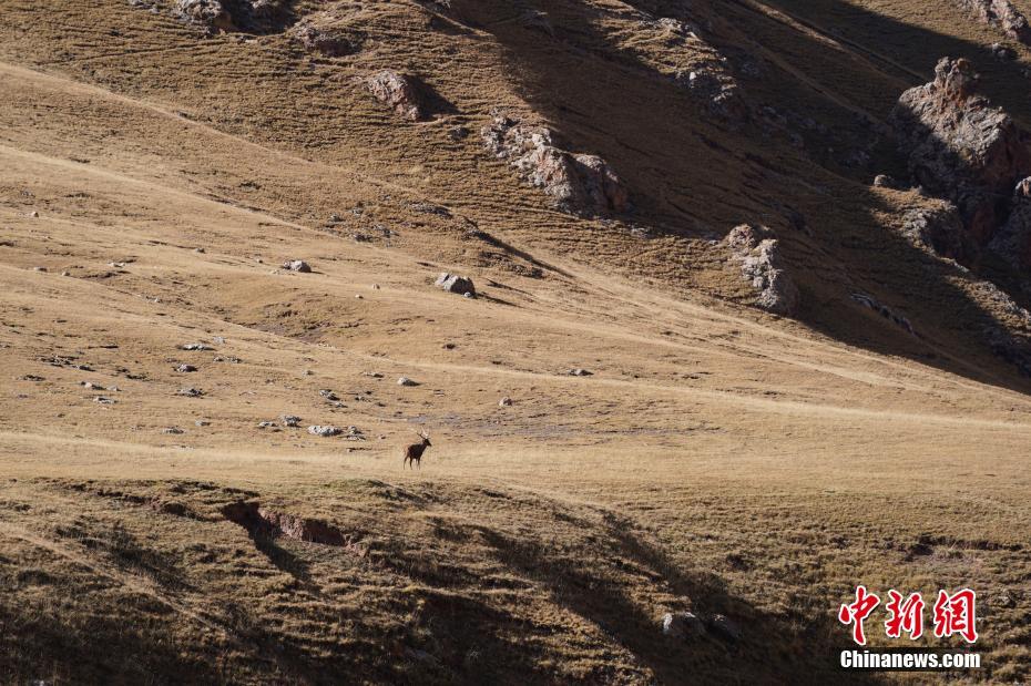 10月15日,位于青海省雜多縣扎青鄉(xiāng)的瀾滄江源頭如油畫(huà)般的風(fēng)景。圖為國(guó)家二級(jí)保護(hù)動(dòng)物馬鹿。中新社記者 蘇丹 攝
