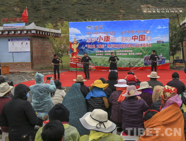 中國西藏網(wǎng)訊 10月20日,由四川省文聯(lián)、甘孜州委宣傳部主辦的“邁步小康路,鑄牢中國魂”送歡樂下基層活動(dòng)在四川省甘孜藏族自治州道孚縣麻孜鄉(xiāng)溝爾普村舉行。