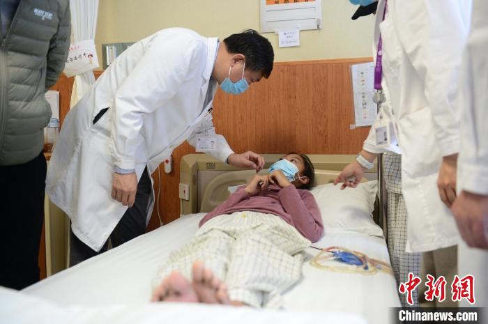 近日,一對(duì)來自青海玉樹、患肝包蟲病的姐弟在北京接受免費(fèi)手術(shù)治療。手術(shù)由中國工程院院士、北京清華長(zhǎng)庚醫(yī)院院長(zhǎng)董家鴻親自主刀。圖為董家鴻院士為患者查房,了解病情?!巴摹す茶T中國心”基金 供圖 中新社 發(fā) “同心·共鑄中國心”基金 攝