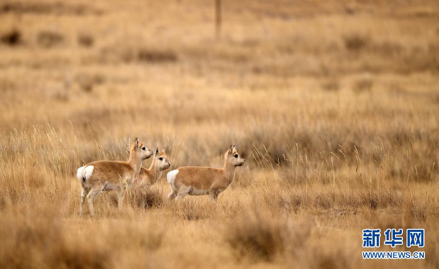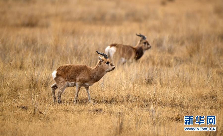 12月17日在青海海北剛察縣哈爾蓋鎮(zhèn)的草原上拍攝的普氏原羚。新華社記者 張宏祥 攝