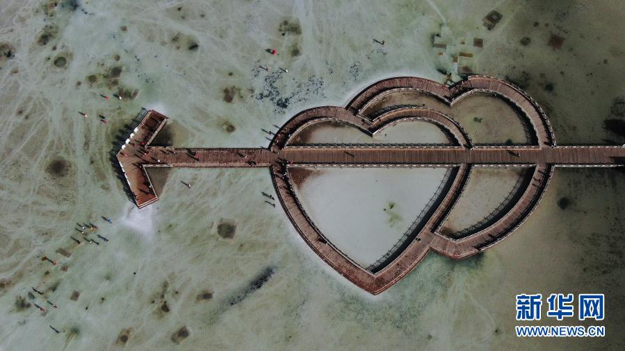 這是9月23日拍攝的茶卡鹽湖“天空之鏡”景區(qū)一角(無人機照片)。新華社記者 張龍 攝