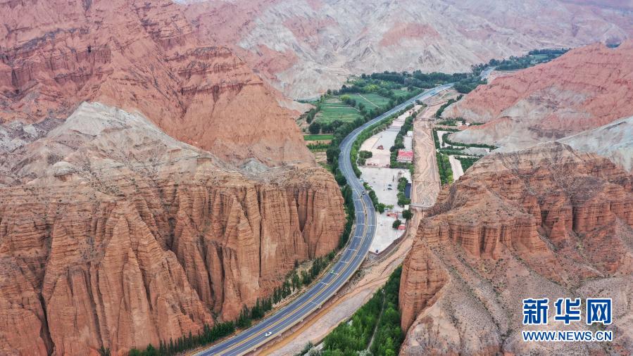 這是6月15日拍攝的位于青海貴德縣境內(nèi)的丹霞地貌(無人機照片)。新華社記者 吳剛 攝