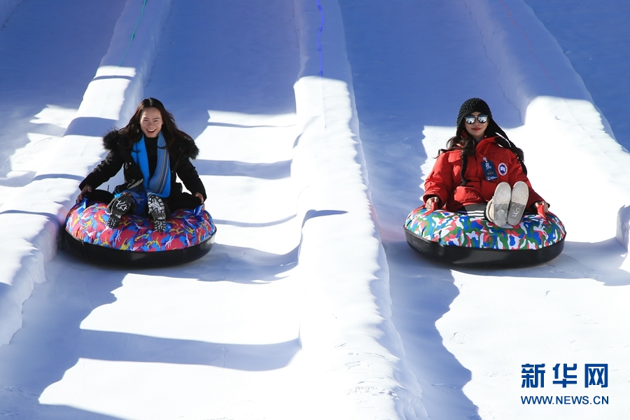 活動現(xiàn)場,游客正在體驗冰雪娛樂項目。新華網(wǎng) 馬洪婷 攝