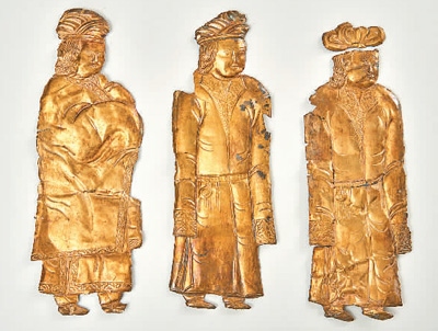 唐吐蕃時(shí)期鍍金銀質(zhì)人物像飾件。青海藏醫(yī)藥文化博物館供圖