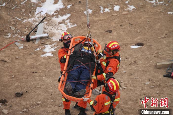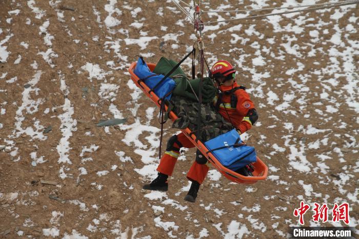圖為玉樹州消防救援支隊進行斜下救助。陳強 攝