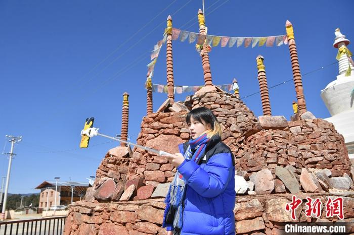 圖為格桑卓瑪通過社交媒體,用中英雙語向海外展示藏族文化風(fēng)情、民族歌舞、特色美食。中新社記者 劉冉陽 攝