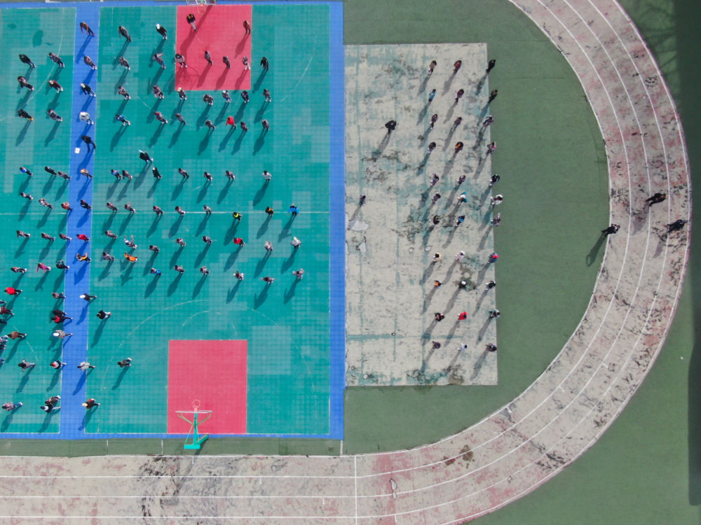 在青海省玉樹(shù)藏族自治州八一孤兒學(xué)校,學(xué)生們?cè)谶M(jìn)行課間活動(dòng)(2020年4月3日攝)。 新華社記者 張龍 攝