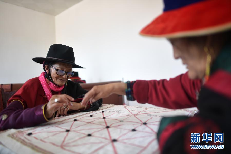 3月14日,在治多縣幸福敬老院棋牌室內(nèi),來自治多縣索加鄉(xiāng)的75歲老人青美(左)和同伴在下藏棋。新華社記者 張宏祥 攝