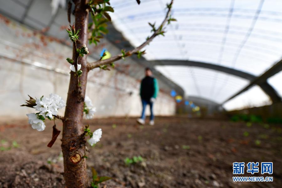 3月14日,在青海省果洛藏族自治州農牧業(yè)生態(tài)科技示范園內,農業(yè)技術員冷治在櫻桃樹種植棚內工作。新華社記者 張龍 攝