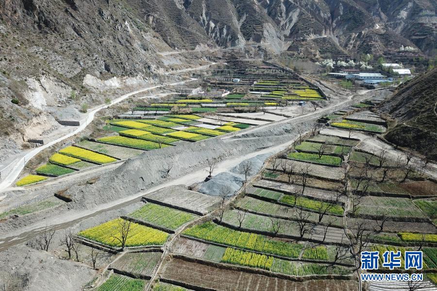 這是3月17日在舟曲縣城關鎮(zhèn)境內(nèi)拍攝的油菜花(無人機照片)。新華社記者 范培珅 攝