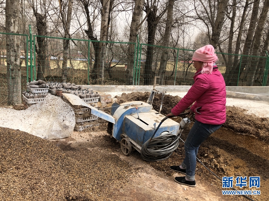 圖為廖玉梅正在攪拌羊肚菌培養(yǎng)基質(zhì)。新華網(wǎng) 魚(yú)昊 攝