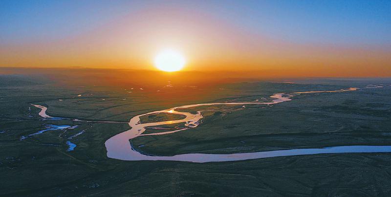 3月9日,若爾蓋縣唐克鎮(zhèn)九曲黃河第一灣的日出。尹鋼 攝