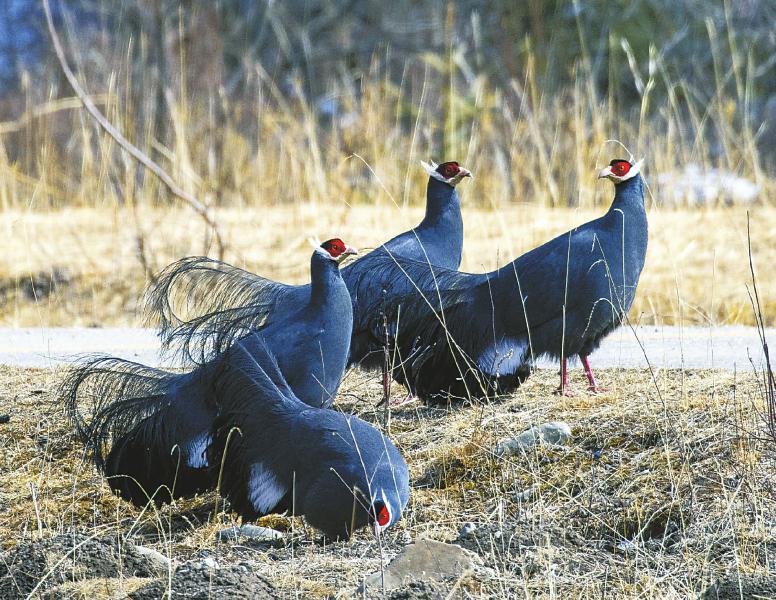 3月9日,在若爾蓋濕地最北部濕地深丘,一群藍(lán)馬雞正享受著午后的陽(yáng)光。尹鋼 攝