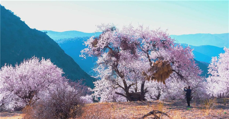 四川省得榮縣:桃花恣意綻放 美成人間仙境