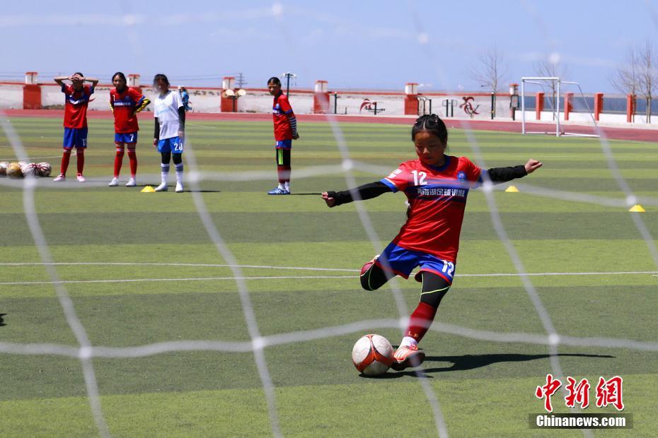 4月21日,青海省海南藏族自治州共和縣,青海湖民族寄宿制學(xué)校的足球場上,女子足球隊的隊員們正在進行訓(xùn)練。該校的女子足球隊共有小學(xué)組、初中組隊員53人,皆為來自牧區(qū)的藏族女孩。中新社記者 馬銘言 攝