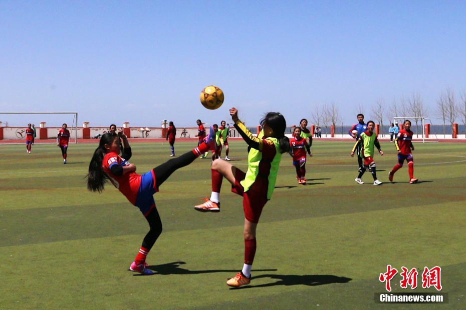 青海湖畔的校園女子足球隊 成員清一色藏族女孩