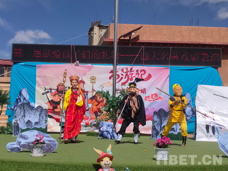 藏語版《西游記之三打白骨精》按原著還原了唐僧師徒四人的這段經(jīng)歷,別樣風趣的本地藏語方言對話、一波三折的故事情節(jié)贏得了觀眾的熱烈掌聲?!度龂萘x之桃園三結(jié)義》戲劇情節(jié)中,劉備、關羽和張飛三人肝膽相照、取長補短、互改缺點,以引人入勝的小故事引導孩子們陶冶道德情操、多交志同道合的朋友。