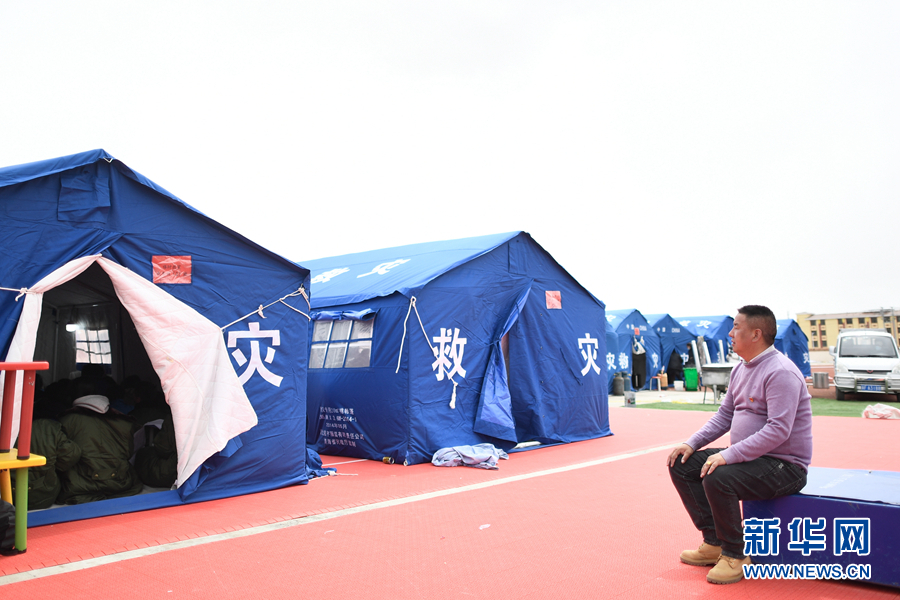 5月23日夜間,李加才讓在瑪多縣民族寄宿制中學(xué)操場的學(xué)生營地巡查。新華社記者 張龍 攝