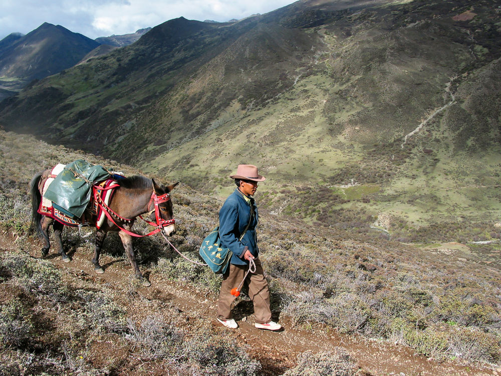 2005年9月27日,王順友行走在“馬班郵路”上(中國郵政集團有限公司四川省分公司供圖)。