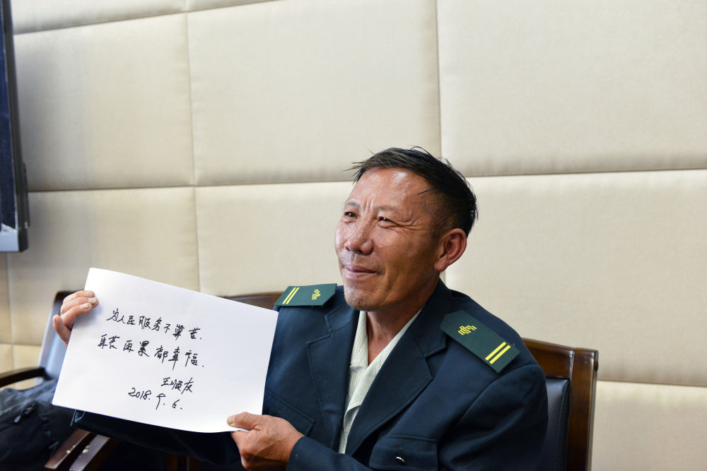 2018年9月6日,王順友寫下“為人民服務(wù)不算苦,再苦再累都幸福”(中國郵政集團有限公司四川省分公司供圖)。