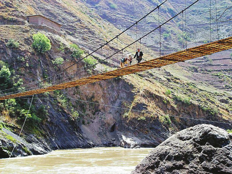 拉馬過吊橋的王順友。四川日?qǐng)?bào)全媒體記者毛漫丁攝(攝于2005年5月)