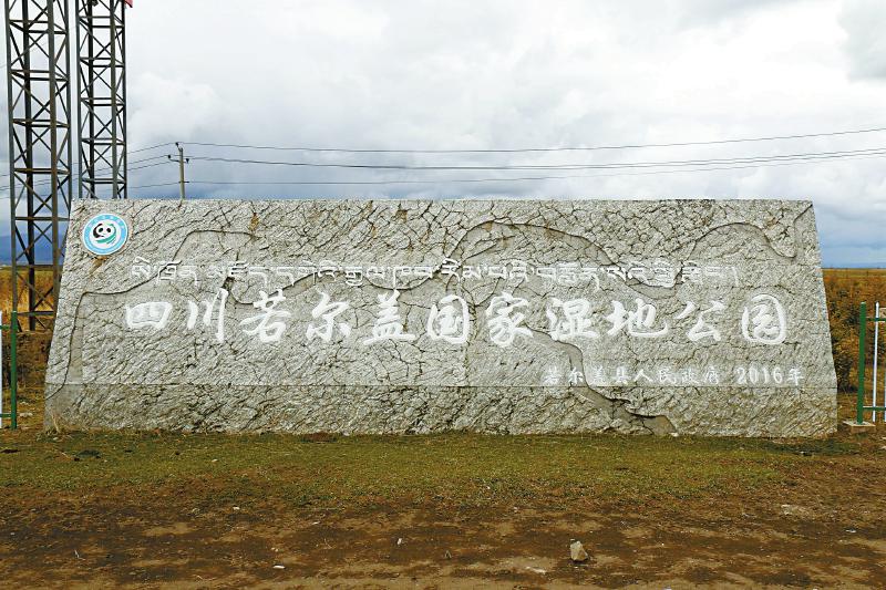 四川若爾蓋國家濕地公園石碑。四川日?qǐng)?bào)全媒體記者 徐登林 攝