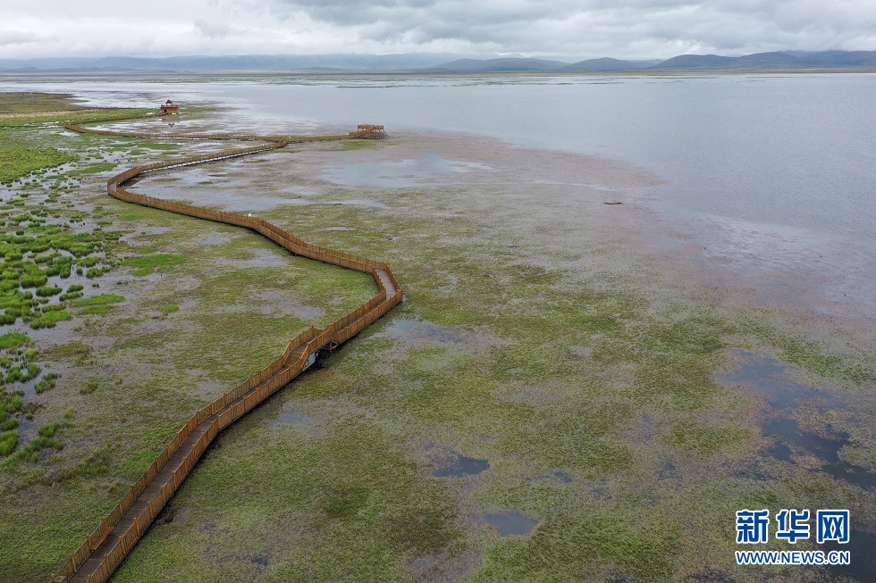 這是6月2日在甘肅省甘南藏族自治州碌曲縣拍攝的尕海湖(無人機照片)。新華社記者 杜哲宇 攝