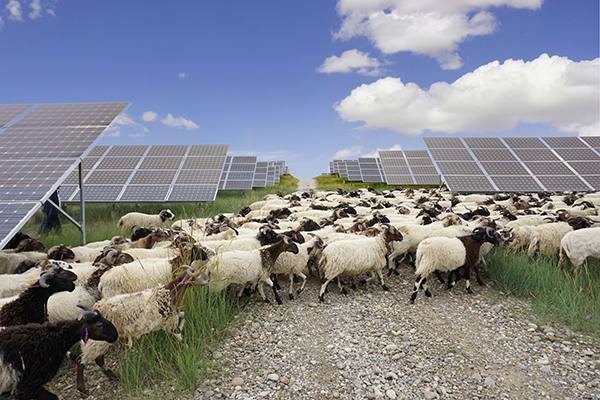 雜草越長越好,既遮擋光伏板工作,在冬季還有火災(zāi)隱患。周邊村民受邀進園區(qū)放羊, 為鋤草助力。再加上清洗光伏組件、割草、做保安,村民們拓寬了收入渠道,得以脫貧致富。這種牧光互補的模式,實現(xiàn)了經(jīng)濟、環(huán)境效益雙贏,也豐富了清潔能源產(chǎn)業(yè)的內(nèi)涵。