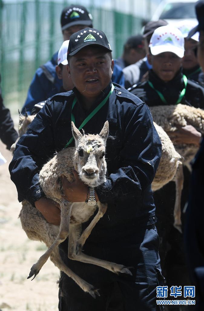 7月7日,在可可西里索南達(dá)杰保護(hù)站野生動(dòng)物救助中心,一只藏羚羊被放歸大自然。當(dāng)日,在可可西里索南達(dá)杰保護(hù)站野生動(dòng)物救助中心,三公兩母共五只人工救助的藏羚羊被放歸大自然。新華社記者 張龍 攝