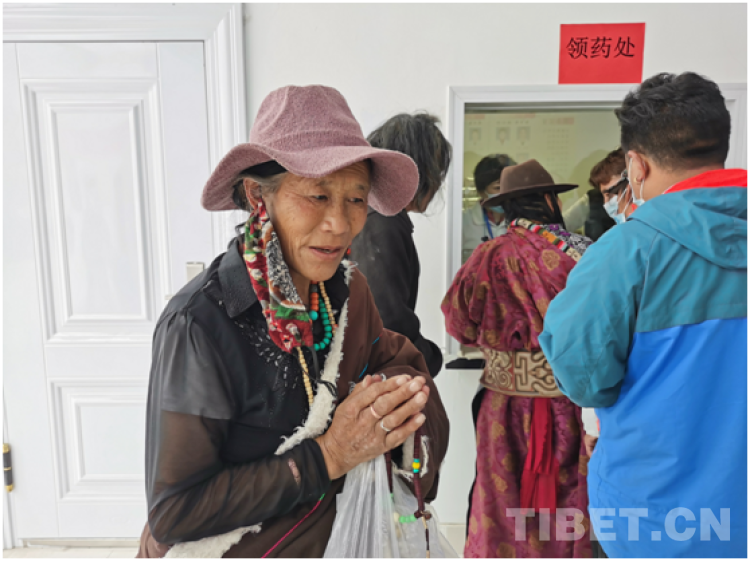 一名50多歲的藏族老人在領(lǐng)到免費(fèi)的藥品后,拉著志愿者的手感動得流下眼淚。她說:你們太好了,看病給藥不要錢,謝謝你們!