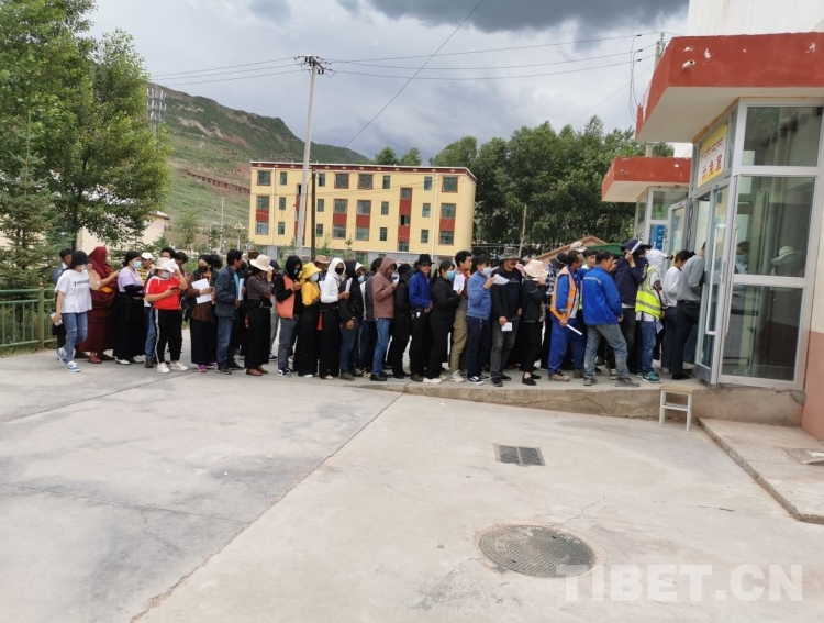 圖為果洛藏族自治州瑪沁縣拉加鎮(zhèn)衛(wèi)生院排隊等候義診的當?shù)厝罕?/p>