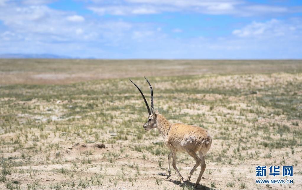 4月20日,藏羚羊在三江源可可西里地區(qū)活動。新華社發(fā)