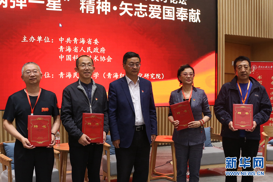 青海民族大學(xué)黨委書記薛建華為青海紅色文化研究院特聘研究員頒發(fā)聘書。新華網(wǎng) 卡婭梅朵 攝