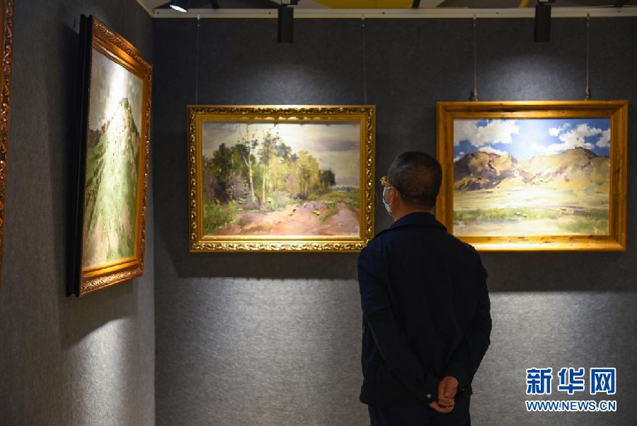 展覽現(xiàn)場(chǎng),觀(guān)眾正在欣賞展出的作品。新華網(wǎng) 齊雨萌 攝