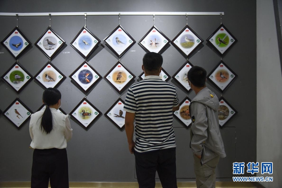 8月5日,觀(guān)眾在首屆祁連山國(guó)家公園青海片區(qū)生態(tài)藝術(shù)展欣賞展出的作品。新華網(wǎng) 齊雨萌 攝