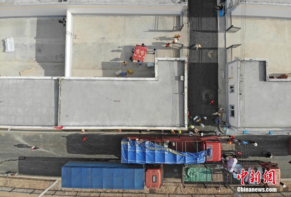 8月7日,甘肅省舟曲縣首批60戶289名地質災害避險搬遷村民到達蘭州新區(qū)并入住。甘肅舟曲縣啟動地質災害避險搬遷工作,第一批次60戶289人集中告別故土,乘車前往數百公里之外的蘭州新區(qū)。(無人機拍攝) 中新社記者 楊艷敏 攝