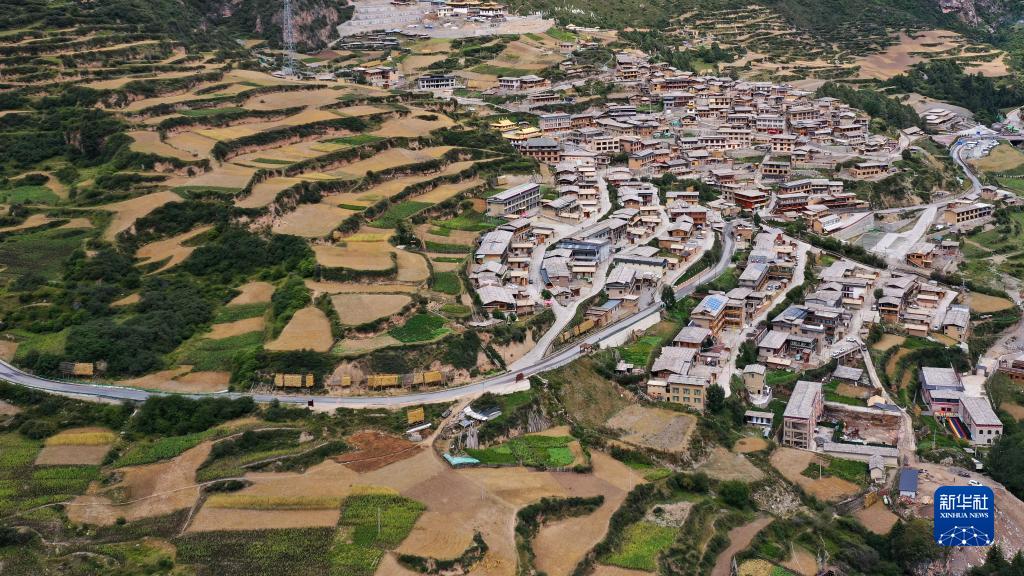 這是8月28日拍攝的扎尕那美麗風(fēng)光(無人機(jī)照片)。新華社記者 陳斌 攝