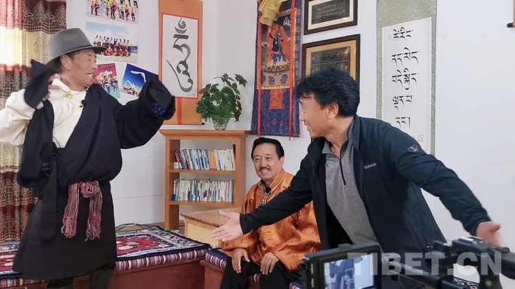 圖為非遺傳承人陳邦文(左一)為“云游甘孜”錄影