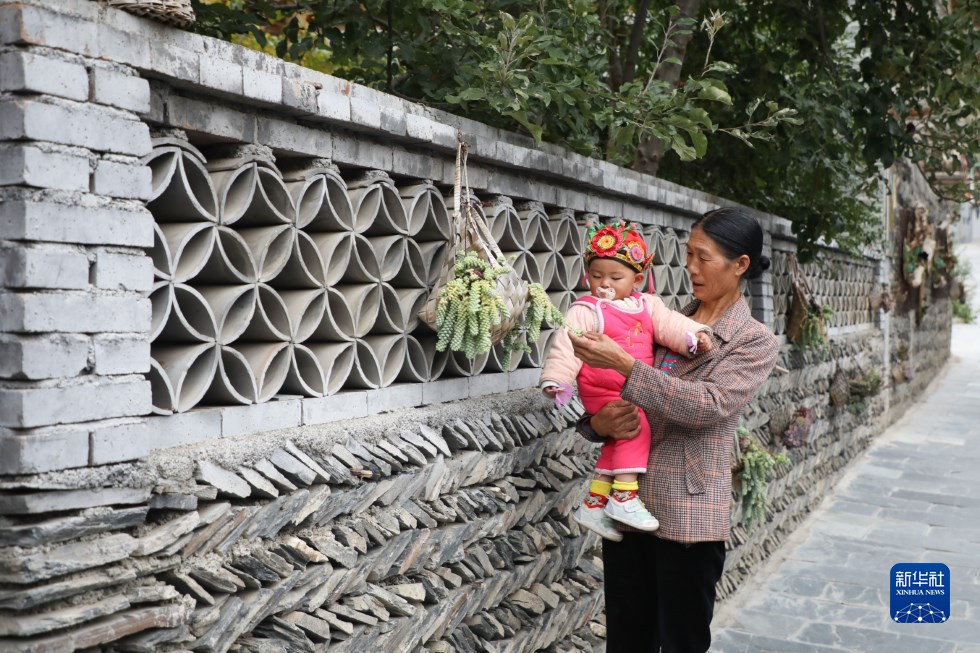 10月13日,舟曲縣巴藏鎮(zhèn)前北山村村民帶孩子在村里散步。新華社記者 馬希平 攝