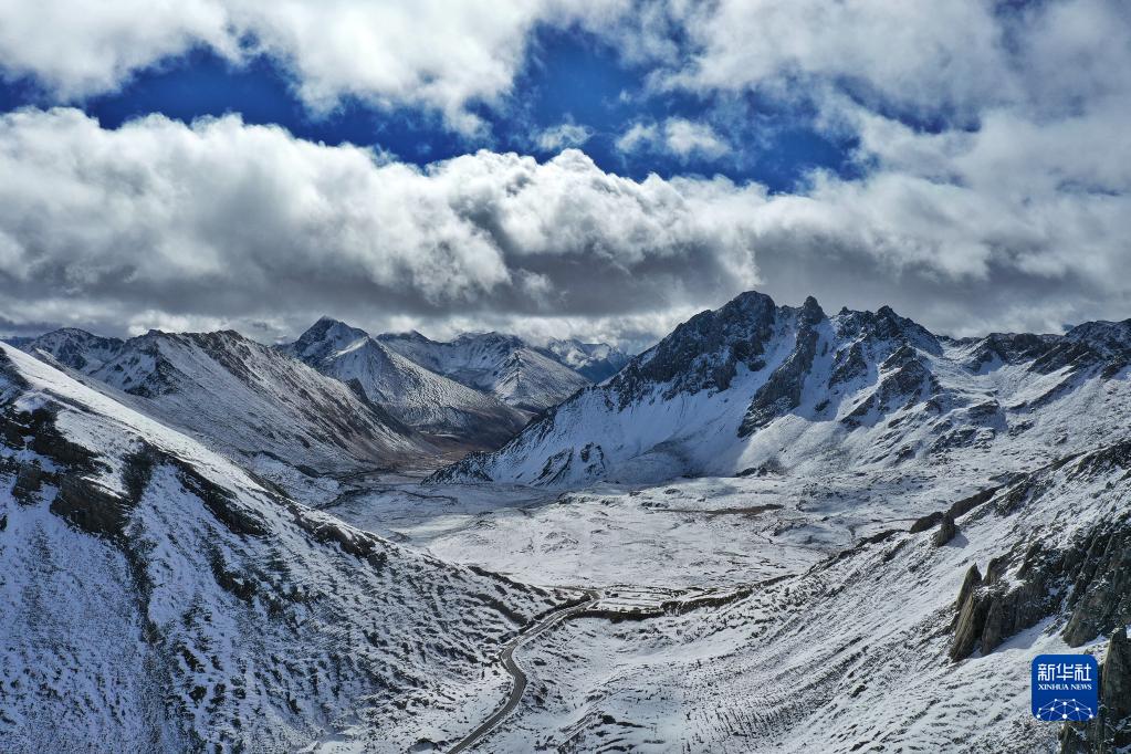 這是四川省甘孜藏族自治州巴塘縣境內(nèi)的通往藏巴拉雪山埡口的公路(10月23日攝,無(wú)人機(jī)全景照片)。新華社記者 胥冰潔 攝
