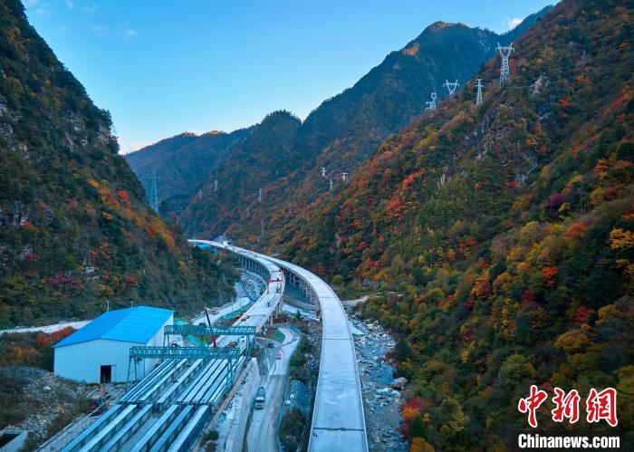 深秋時(shí)節(jié),四川省綿陽(yáng)市平武縣紅葉滿山,層林盡染,仿佛打翻的調(diào)色盤,正在建設(shè)的九綿高速宛若一條玉帶穿行其中,想象通車后駕車行駛在這條高速上,如遨游在五彩斑斕的彩林畫廊中一般,讓人心曠神怡。