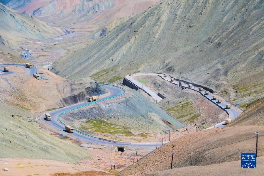 聯(lián)勤保障部隊汽車運輸某團一營一連在執(zhí)行運輸任務(wù)(2020年8月7日攝)。新華社發(fā)