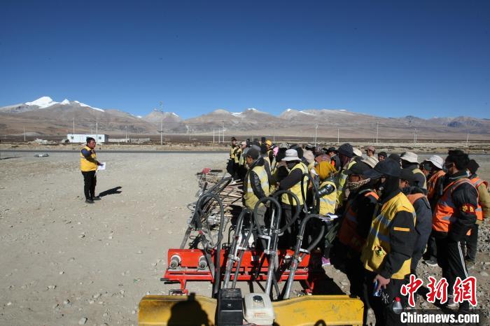 圖為當(dāng)雄車間主任郝二小在班前會上技術(shù)交底。中鐵十二局集團(tuán)鐵路養(yǎng)護(hù)公司當(dāng)雄車間供圖