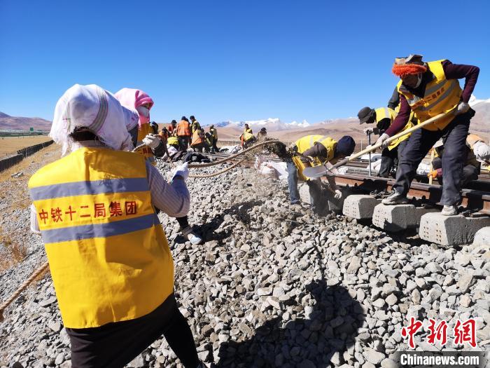 圖為工人對達(dá)瓊果站2號道岔精細(xì)搗固。中鐵十二局集團(tuán)鐵路養(yǎng)護(hù)公司當(dāng)雄車間供圖